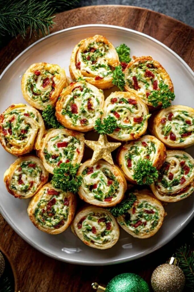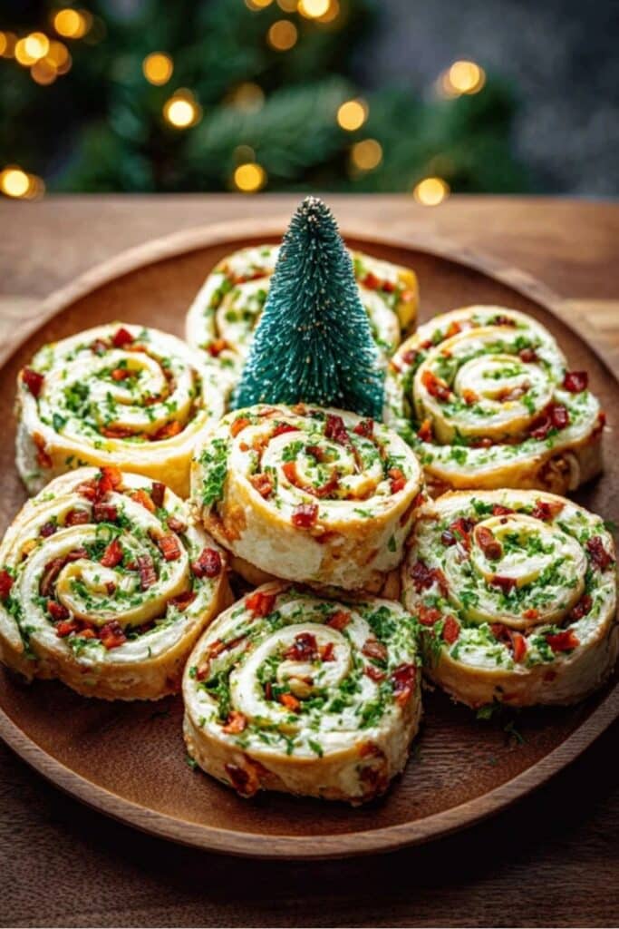 Serving a health-conscious crowd? Opt for whole grain or spinach tortillas and use Greek yogurt as a light base. No matter the combo, the format remains festive, fun, and finger-friendly. And with dishes like Charcuterie Cones or Mini Bacon Ranch Cheeseballs alongside them, your spread will look like a holiday magazine cover.