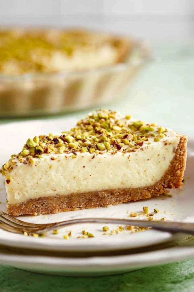 Once your Baked Pistachio Custard Pie is chilled, slice it with a warm knife for clean cuts. Serve it slightly cold—not straight from the fridge—to allow the custard to soften slightly. That’s when the texture really shines.