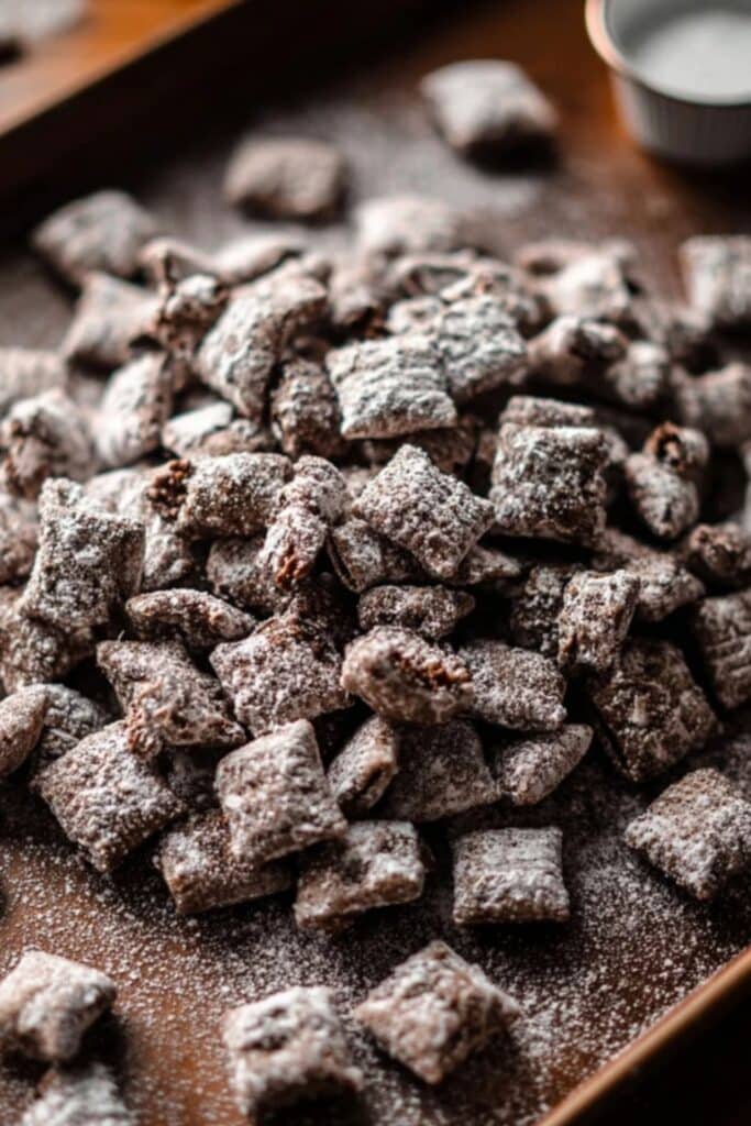 Yes! Despite the name “puppy chow,” this snack is 100% human food. Just make sure to use heat-treated brownie mix or bake it briefly to eliminate bacteria if using raw flour.