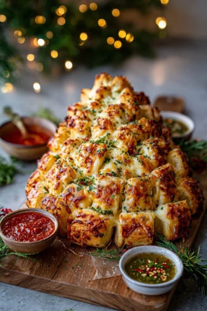 Once the tree is baked and golden, it’s time to dip. Classic marinara is a no-fail option, but don’t stop there. Pesto, ranch, and Alfredo all add something special. Set out a trio of sauces for guests to sample. Cheesy Pull-Apart Christmas Tree Bread becomes more interactive and festive when you invite dipping.
