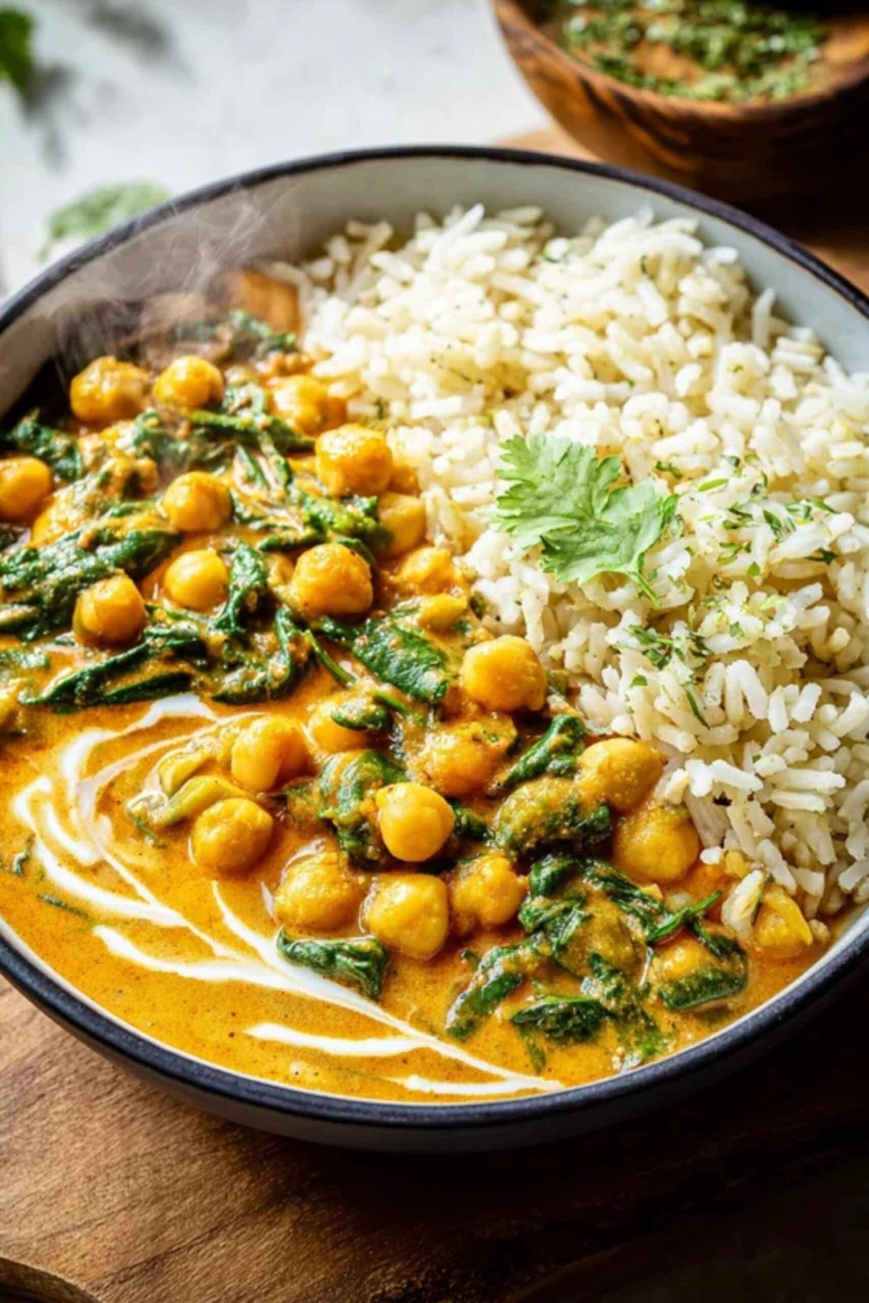 It can be a very balanced meal. Chickpeas bring fiber and plant protein, while spinach adds vitamins and minerals. The overall nutrition depends on how much oil and coconut milk you use, but many ranking recipes position it as a wholesome vegan or vegetarian dinner.