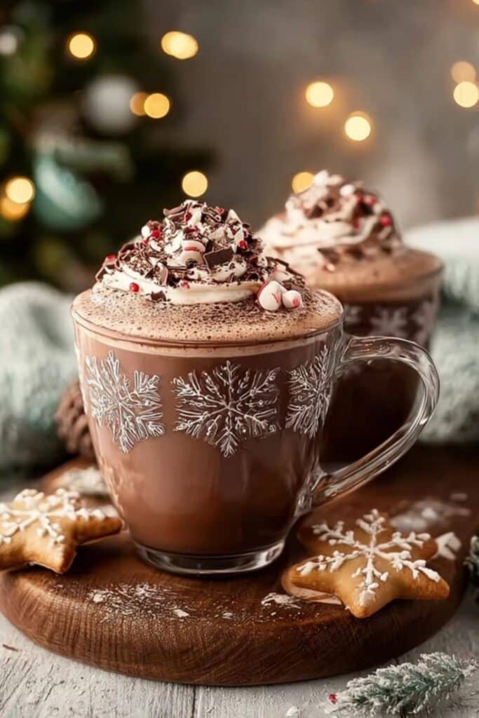 Definitely! Use plant-based milk like oat or almond, vegan chocolate, and coconut whipped cream. You can also top them with vegan marshmallows or crushed peppermint for that classic holiday feel.