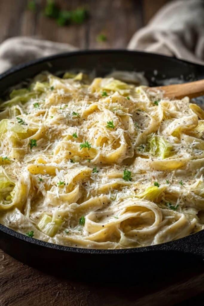 Creamy cabbage alfredo with parmesan for a cozy skillet dinner