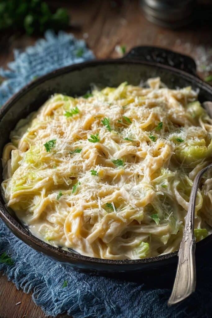 Last winter, I stood in my kitchen with a half head of cabbage, a wedge of Parmesan, and absolutely no desire to make another boring side dish. I wanted something warm, rich, and deeply comforting, but I also wanted dinner to feel a little lighter than a huge bowl of pasta. That night, Creamy cabbage alfredo with parmesan saved me. The cabbage softened into silky ribbons, the sauce turned glossy and savory, and the whole skillet tasted far fancier than the ingredient list suggested. Since then, Creamy cabbage alfredo with parmesan has become one of those dinners I crave when I want comfort without too much fuss.