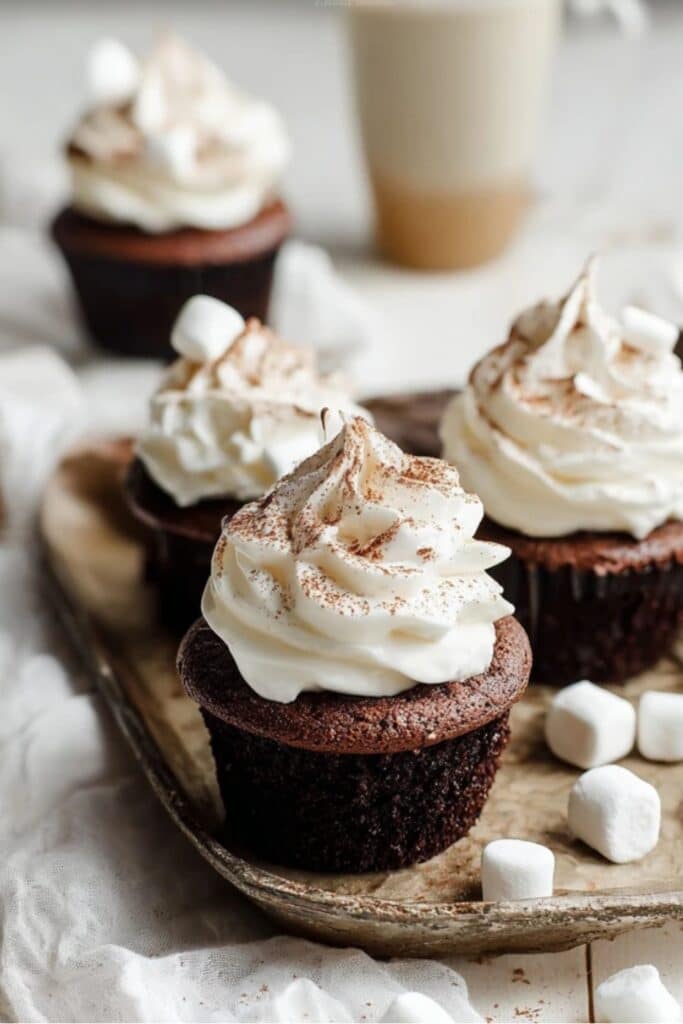 You’ll notice how these cupcakes differ from a regular chocolate cupcake. For starters, the cocoa is deeper, more intense — almost like sipping a melted candy bar. And instead of standard buttercream, the marshmallow fluff frosting adds an airy sweetness that melts in your mouth. This dessert is everything winter should taste like.