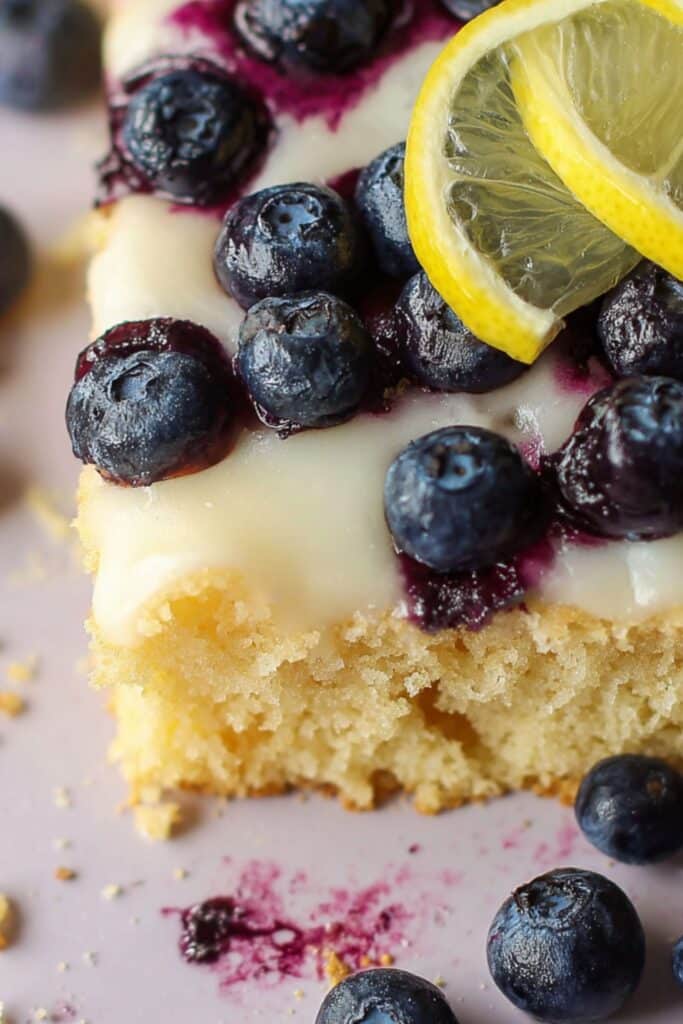 One common mistake when baking a lemon blueberry sheet cake is ending up with all the blueberries at the bottom. That’s no fun. The secret? Toss them in a spoonful of flour before folding them into the batter. This helps suspend them evenly throughout the cake.