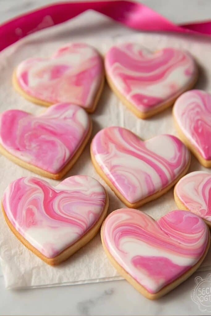 The beauty of Marbled Pink Valentine’s Day Sugar Cookies is their flexibility. Hosting a Galentine’s brunch? Pair them with sparkling rosé and floral napkins. Making them for your kids’ school? Use fun sprinkles and edible googly eyes. Want a romantic gesture? Package them in cellophane with a handwritten note.