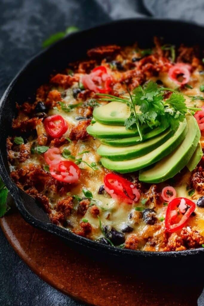 Low-carb eaters can omit any potato or tortilla layers, and it still holds up thanks to the richness of eggs, cheese, and sausage. It’s comfort food without compromise.
