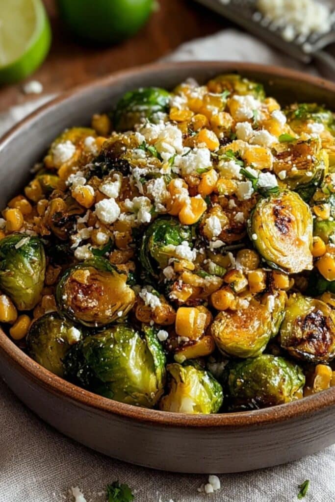 This version of Mexican Street Corn Brussels Sprouts delivers layered flavor: smoky, tangy, cheesy, and savory in every bite.