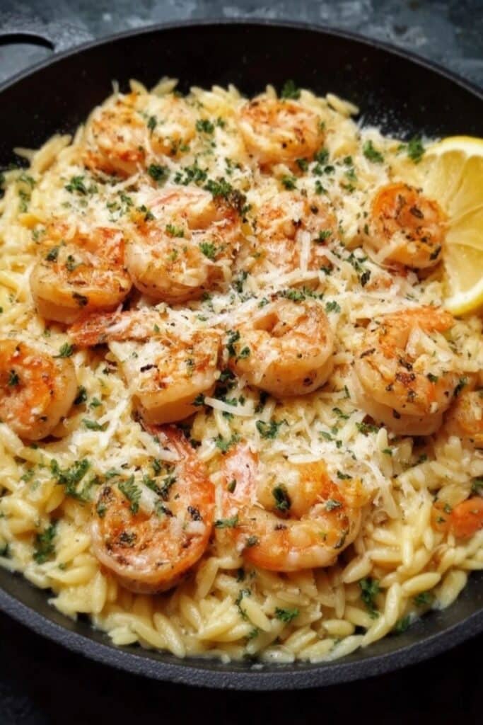 1. Swap the Protein – Not in the mood for shrimp? Swap it with rotisserie chicken, seared scallops, or even crispy pancetta. It still holds up beautifully with the creamy orzo and parmesan combo.